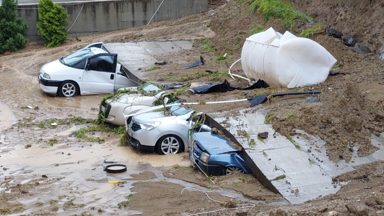 Aracı duvarın altında kalan Hüseyin Sağlam ise, "Sabaha karşı aşırı yağış oldu. Bahçeye baktık. Yetişemedik. Su aniden geldi. Duvarı yıktı, ne varsa götürdü. Araçlarımız duvarın altında kaldı. Maddi zararımız var. Cana gelmedi, şükürler olsun" diye konuştu.