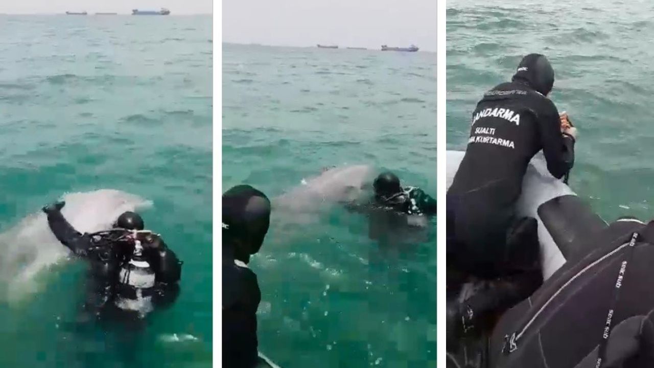 Sarıyer Demirciköy açıklarında dün balıkçıların ağına yunus takıldı. Yunusun kurtarılması için ekiplerden yardım istendi. İhbar üzerine bölgeye yakın olan İstanbul İl Jandarma Komutanlığı Sualtı Arama Kurtarma Timi hızlıca olay yerine gelerek ağlara dolanıp, iğnelere takılan yunusa müdahale etti.