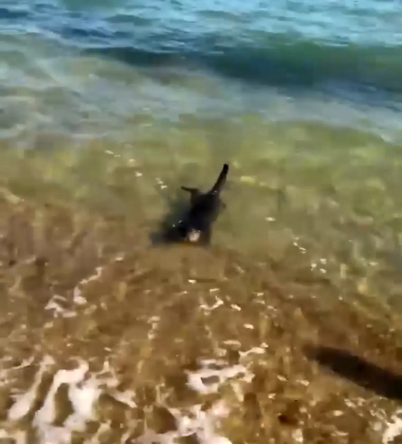 Gülçavuş köyü sahiline gelen vatandaşlar, kıyıda su samurunun yüzdüğünü görerek, o anları cep telefonuyla görüntüledi. Bir süre kıyıda yüzen ve çocukların ilgi odağı olan su samuru, daha sonra açığa giderek gözden kayboldu.