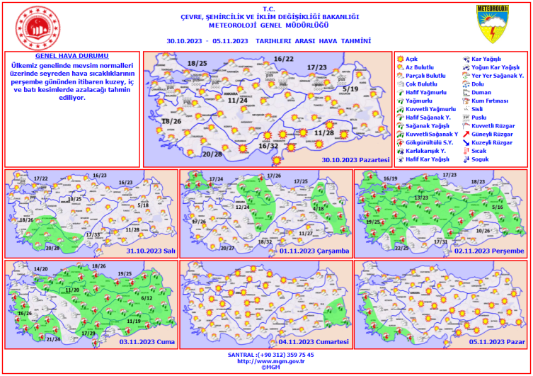 Ülke genelinde mevsim normalleri üzerinde seyreden hava sıcaklıklarının ise perşembe gününden itibaren kuzey, iç ve batı kesimlerde azalacağı tahmin ediliyor.