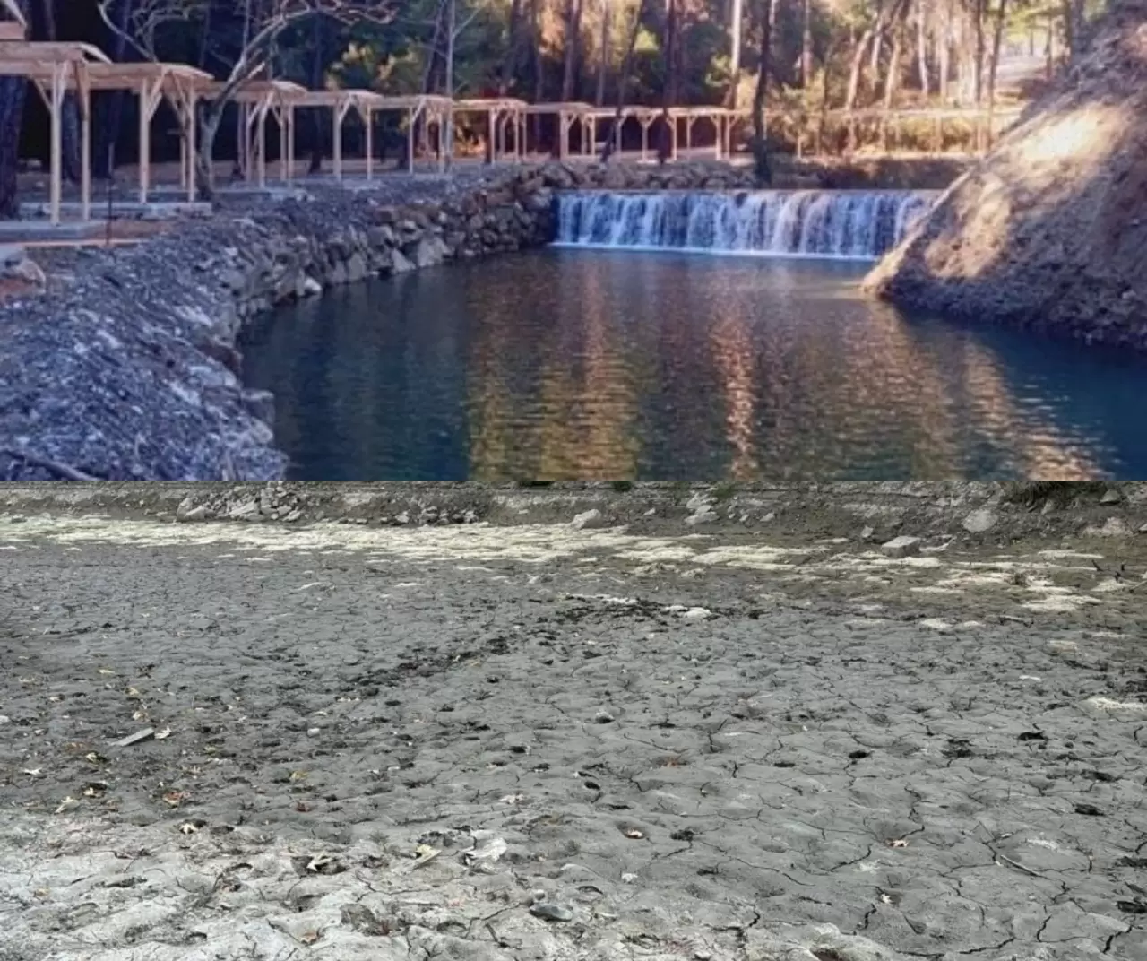 Adana'nın Aladağ ilçesindeki Yedigöze Orman Parkı'nda bulunan Yedigöze Şelaleleri yaşanan kuraklık nedeniyle kurudu, geriye "Suya girmek tehlikeli ve yasaktır" yazılı tabela kaldı.