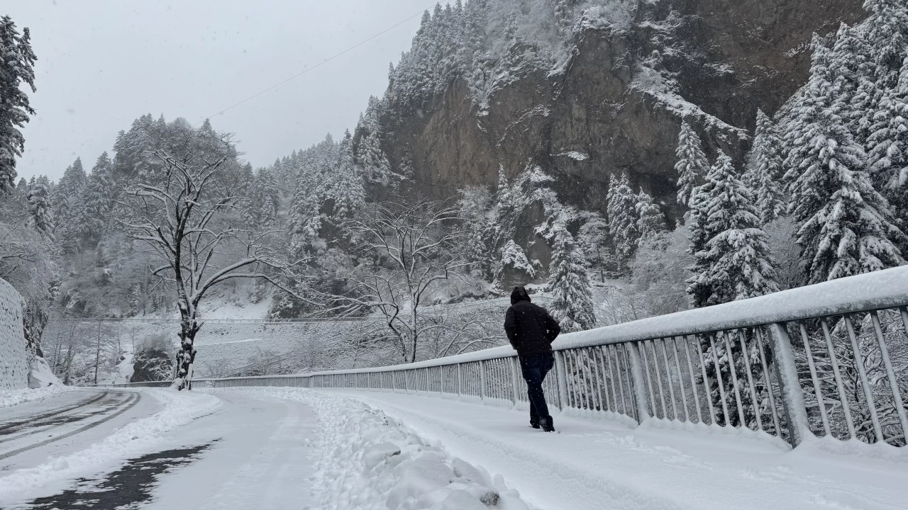 Bölgedeki ağaçlar, çeşmeler ve vadideki derenin bazı bölümleri de karla kaplandı.