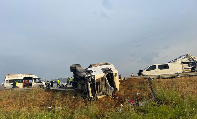 TAG Otoyolu'nun Gaziantep Nurdağı ilçesi yakınlarında 3 tır, 2 minibüs ve 1 motosikletin karıştığı zincirleme trafik kazası meydana geldi.