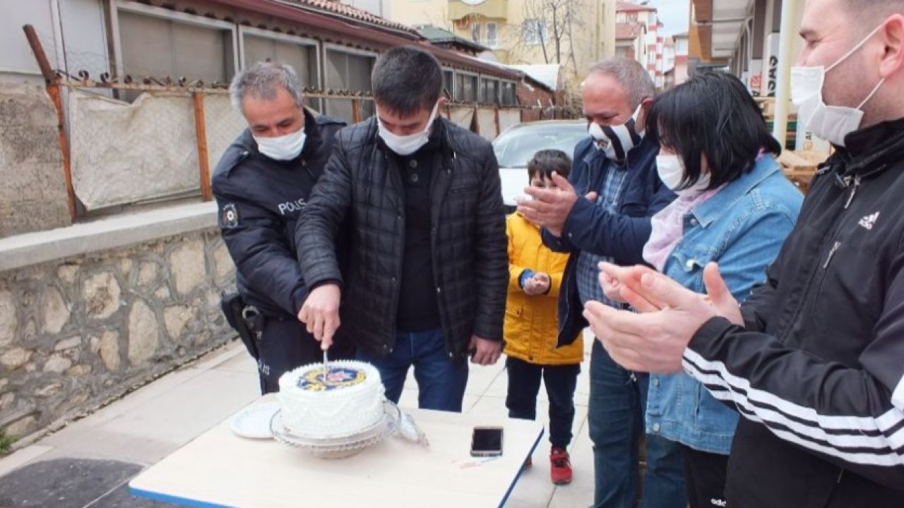 Cumhuriyet Mahallesi'nde ikamet eden Sinan Sever, Türk Polis Teşkilatının 176. kuruluş yıl dönümü dolayısıyla polislere sürpriz kutlama yapmak istedi.