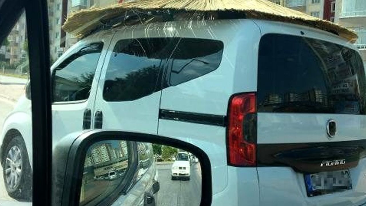 Görüntüler dün akşam saatlerinde merkez Selçuklu ilçesinde kaydedildi. Trafikte seyir hainde olan bir hafif ticari aracın üzerine bağlı bulunan şemsiye görenleri şaşırttı.