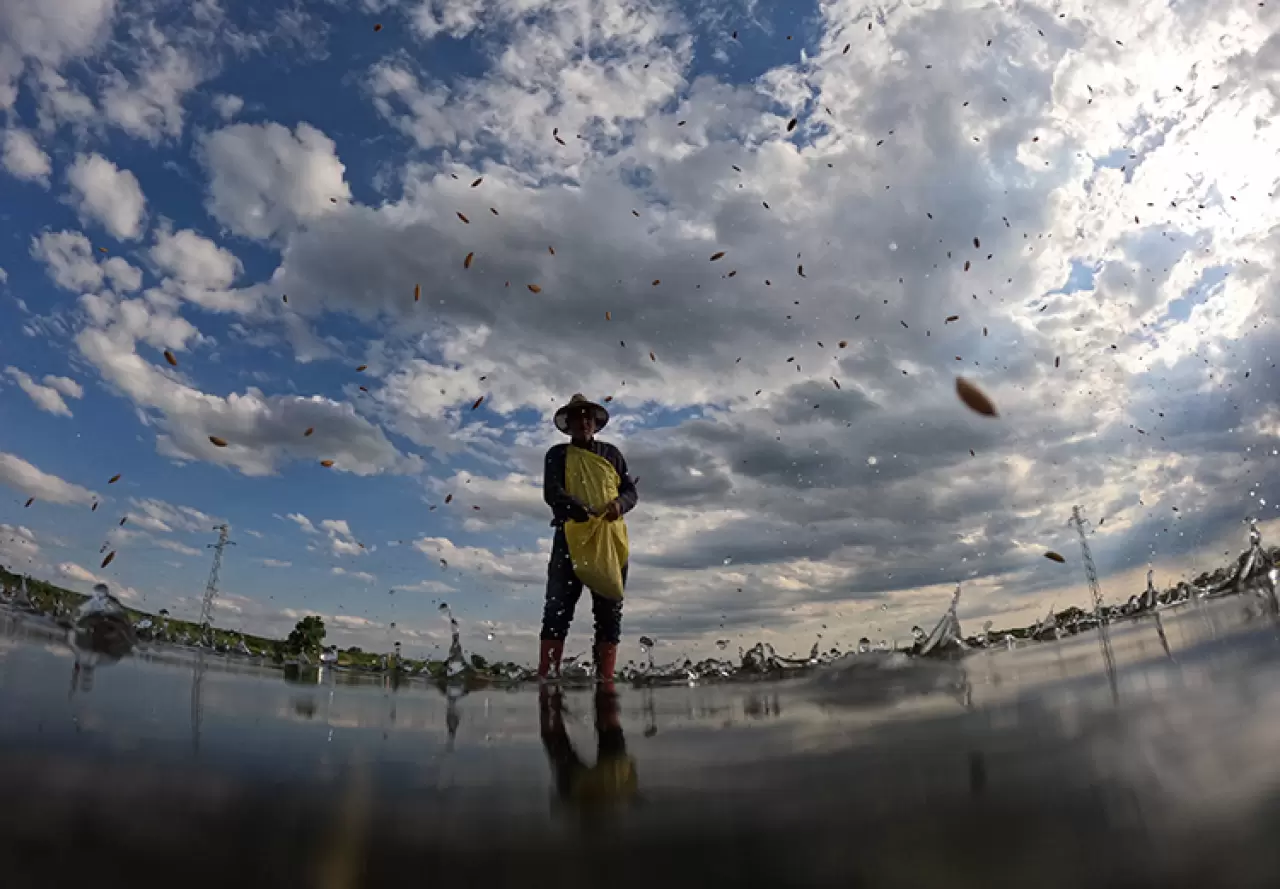 İki hafta önce ortalama 5'er dönüm olarak tarım alanlarının etrafını 30 santimetrelik toprakla çeviren çiftçiler, daha sonra bu alanları suyla doldurdu.