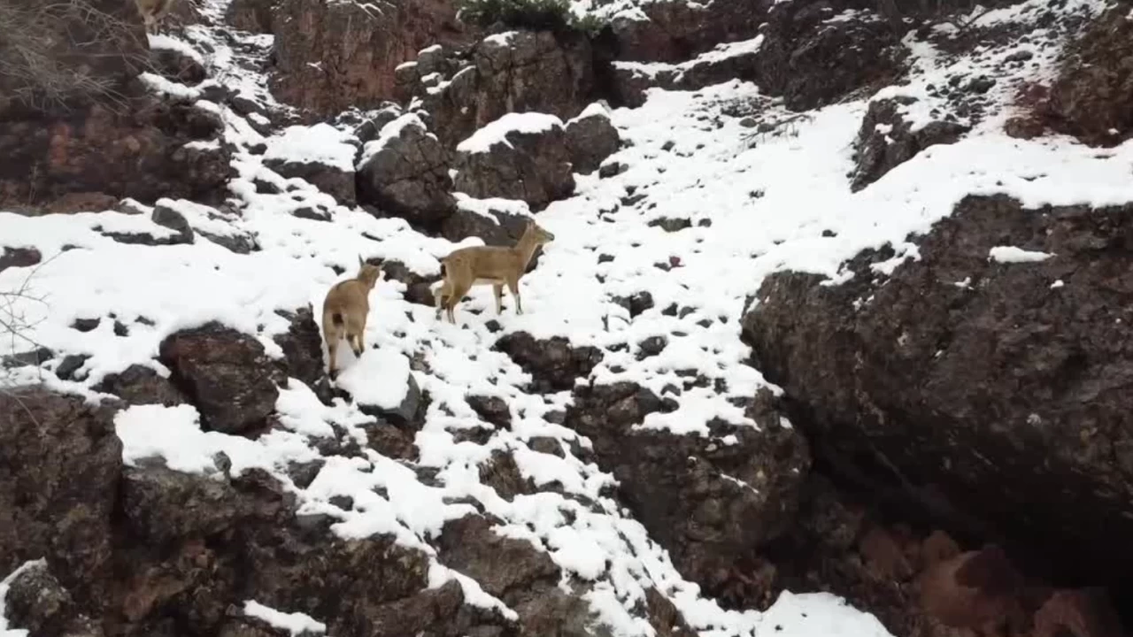 Tunceli'de etkili olan kar yağışı, Munzur Vadisi Milli Parkı'nı beyaza bürürken, bölgede yaşayan yaban keçileri için zorlayıcı koşullar oluşturdu. Kar kalınlığının artmasıyla birlikte yiyecek bulmakta zorlanan keçiler, hayatta kalabilmek için kayalık alanlarda kuru ot arayışına girdi.