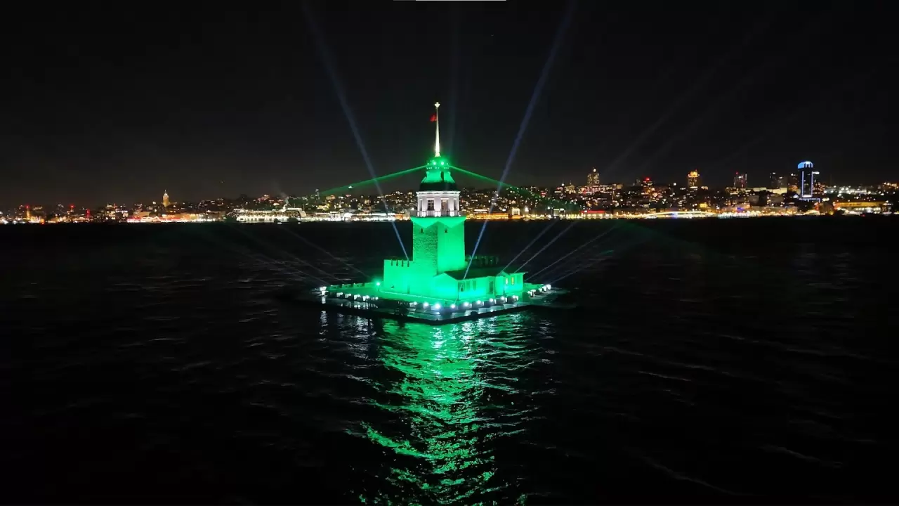 Dron ile kaydedilen görüntülerde, Kız Kulesi’nin ışıklarla oluşturduğu etkileyici görsel ve Boğaz hattının gece silueti net bir şekilde görüldü. Yılbaşına özel hazırlanan ışık şovu, İstanbul’un tarihi dokusu ile modern teknolojinin buluştuğu anlardan biri olarak hafızalara kazındı.