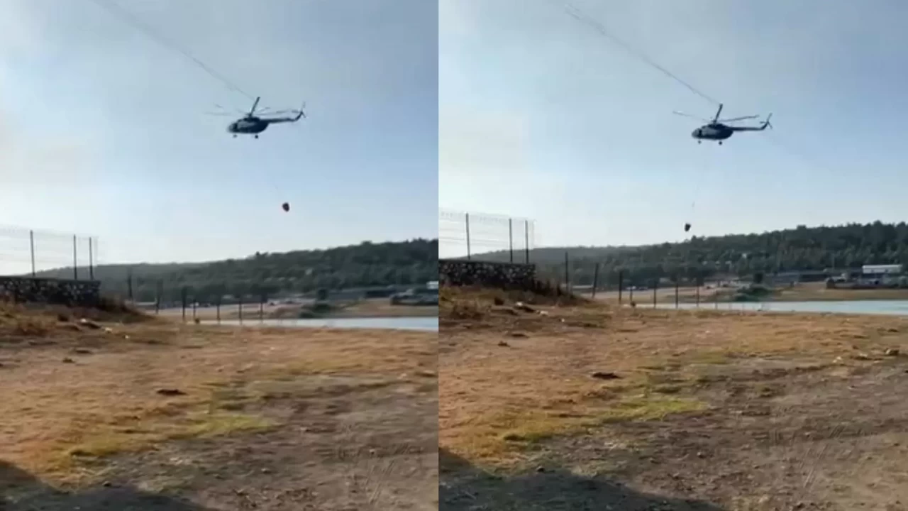 Bursa'nın Nilüfer ilçesinde çıkan orman yangına müdahale eden jandarma pilotu, skorsky helikopteri elektrik tellerinin altından geçirip kahraman Türk askerinin ustalığını bir kez daha gözler önüne serdi.