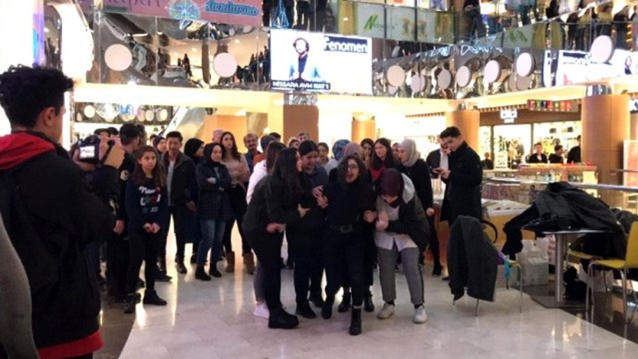 Alışveriş merkezinde kavgayı gören sosyal deneyden bihaber vatandaşların, şiddete maruz kalan genç kadını kurtarmaya koşması kameralara yansırken bazı vatandaşların ise kadına şiddet uygulayan gencin üzerine yürümesi dikkatlerden kaçmadı.