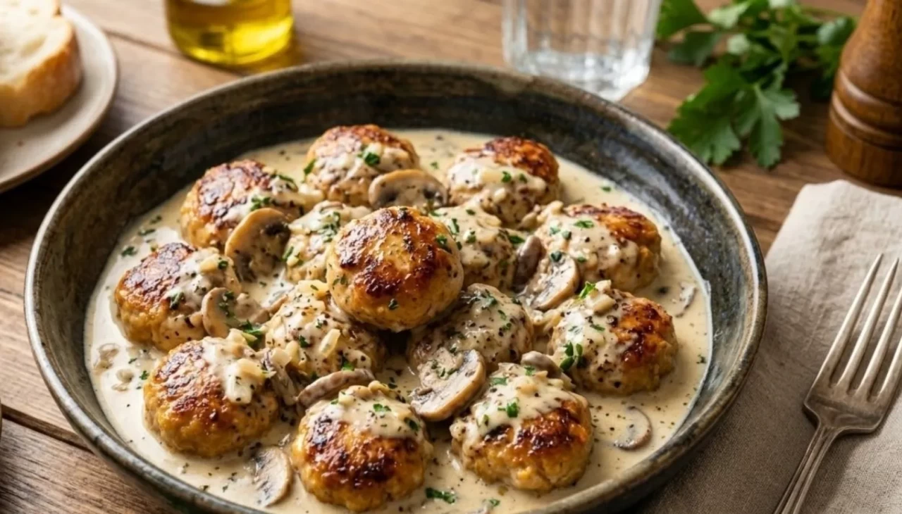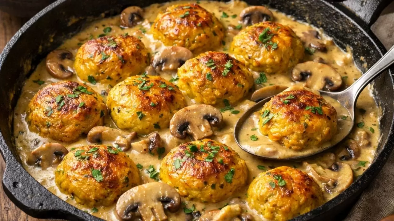 Özetle; Mantar Soslu Tavuk Köftesi, klasik tavuk yemeklerine modern ve kremsi bir yorum getiriyor. Zerdeçalın altın rengi ile mantarın iştah açıcı dokusu, bu yemeği sadece bir ana öğün değil, bir gurme deneyimi haline getiriyor. Yanında sade bir pirinç pilavı veya fırın patates ile servis edildiğinde, ev konforunda restoran kalitesinde bir sofra kurmanızı sağlıyor.