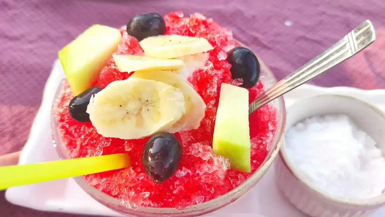 Servis kaselerine buz veya rendelenmiş buz ekleyin, üzerine hazırladığınız bici bici parçalarını yerleştirin.