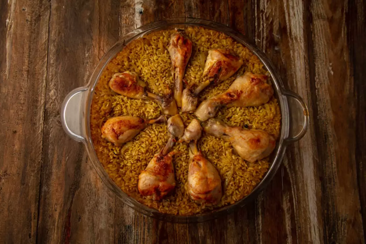 Haşladığınız tavuğu parçalayın ve pilavın üzerine dizin. Dilerseniz bu aşamada yemeği fırına atıp üzerinin hafif kızarmasını sağlayabilirsiniz.