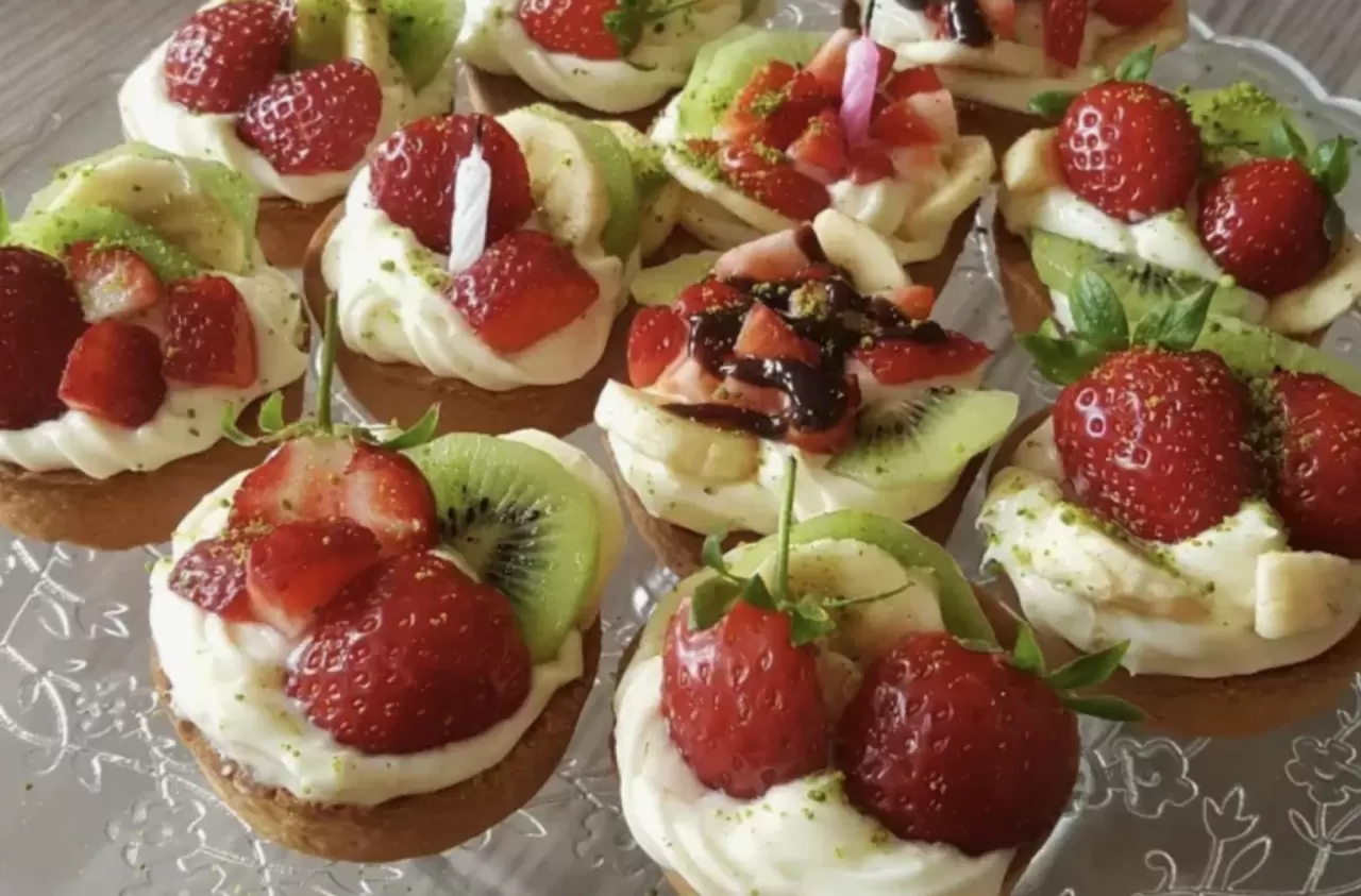 Süsleme: Soğuyan tabanların içine kremayı doldurun, üzerine meyve dilimleri yerleştirin. Parlaklık için bal veya jöle sürün.
