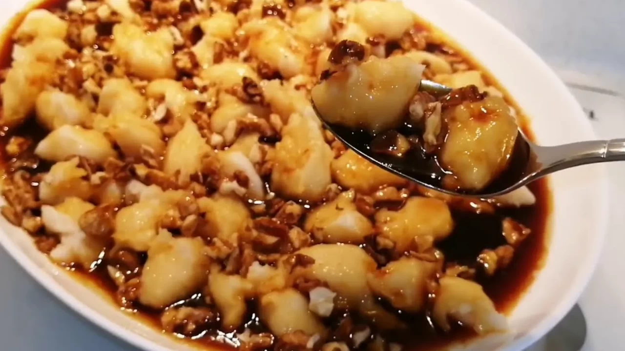 - Üzerine kızdırılmış tereyağı gezdirin ve ceviz serpin.