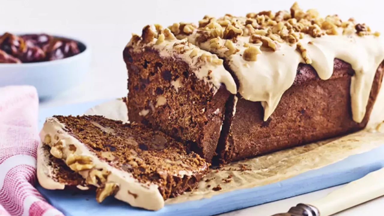 Karışımı yağlanmış kek kalıbına dökün, üzerine ceviz ve biraz esmer şeker serpiştirin.