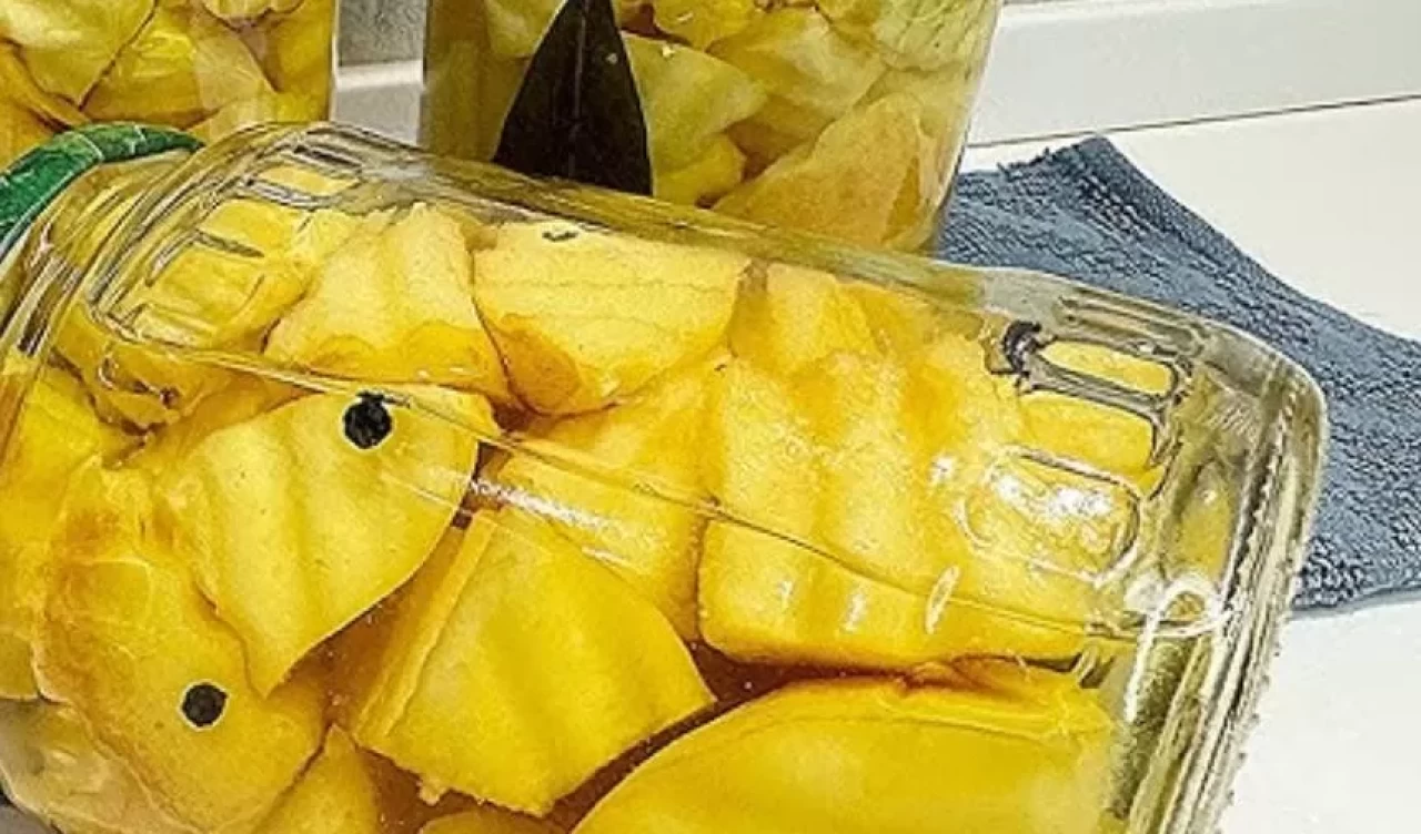 Ayva turşusu, hem görselliği hem de tatlı-ekşi aromasıyla sofraların yıldızı oluyor. Özellikle kış aylarında sofralara renk ve lezzet katan bu turşu, doğal koruyucular sayesinde uzun süre dayanıyor.