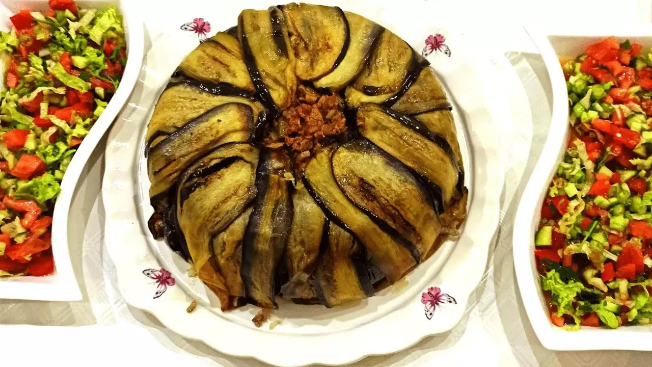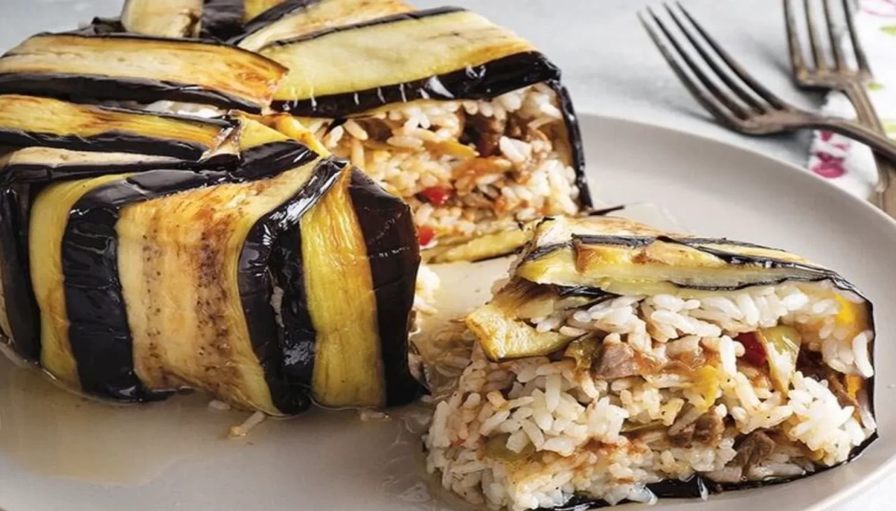 Ramazan’da çoğu evde pilav mutlaka pişer ama bu tarif bildiğimiz pilavlardan biraz farklı. Dışı yumuşacık patlıcan dilimleriyle sarılı, içi tane tane ve mis gibi baharat kokan bir pilav düşünün. Dilimlendiğinde ortaya çıkan görüntü, sofradaki herkesi bir an susturacak kadar iddialı.