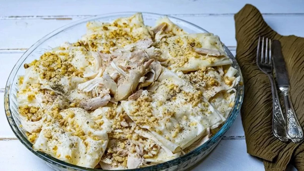 Öncelikle yufkalar rulo şeklinde sarılır ve yaklaşık dört parmak genişliğinde dilimlenir. Daha sonra hindi veya tavuk suyuna batırılarak uygun bir tepsiye yerleştirilir. Katların arasına eritilmiş tereyağı ve ceviz içi serpiştirilir.