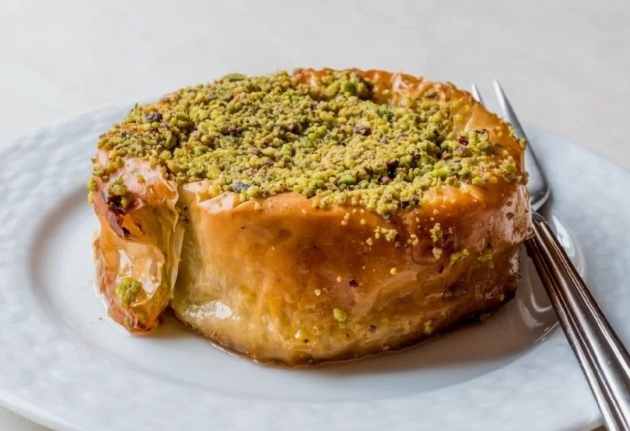 Hamurun üzerine eritilmiş tereyağından bir kaşık gezdirin ve kaymak sürün. Daha sonra çubuk şeklinde sarın. Yağlanmış fırın tepsisine, dıştan içe doğru dizin. Dilerseniz tek kişilik rulo şeklinde de hazırlayabilirsiniz. Tüm yufkalar bitince, kalan tereyağını ısıtıp üzerine gezdirin. Önceden ısıtılmış fırında, hamur pembeleşene kadar pişirin.