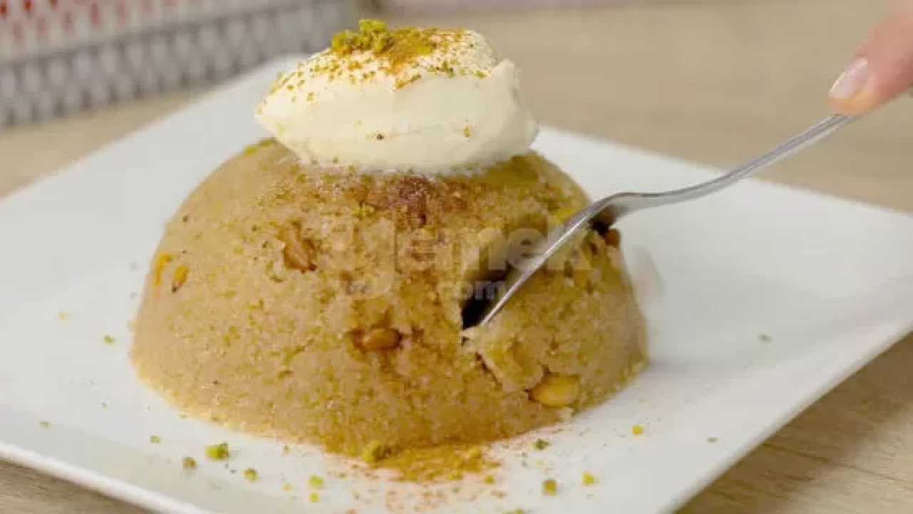 Demlenen irmik helvasını servis kaselerine aktarın, ters çevirin ve isteğe bağlı olarak tarçın veya dondurma ile servis edin. Afiyet olsun!