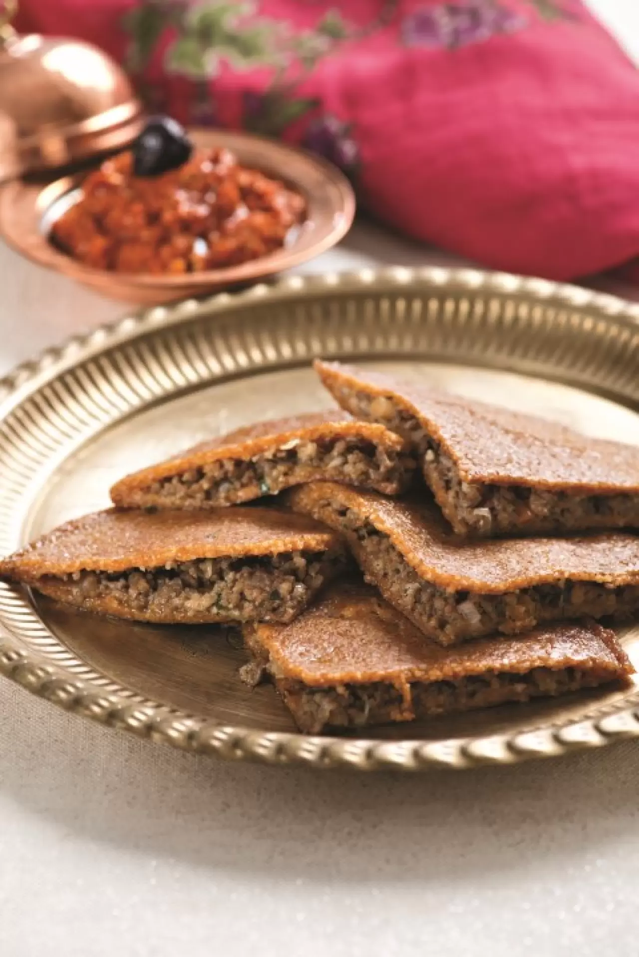 Dinlenen hamurdan ceviz büyüklüğünde parçalar koparın ve incecik açın. Açtığınız hamurun yarısını kıymalı harçla doldurun, diğer yarısını üzerine kapatın ve parmak uçlarınızla kenarlarını iyice bastırarak kapatın ki pişerken açılmasın.