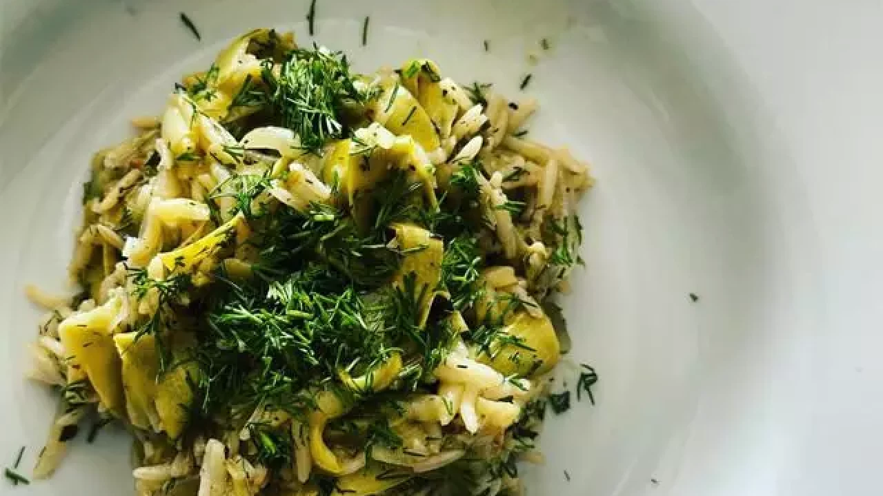 Taze soğanın beyaz kısmını, limon kabuğunu, sarımsakları ve dereotu ile nane saplarını ince ince doğrayın. Pirinçle birlikte zeytinyağında yaklaşık 5 dakika kavurun.