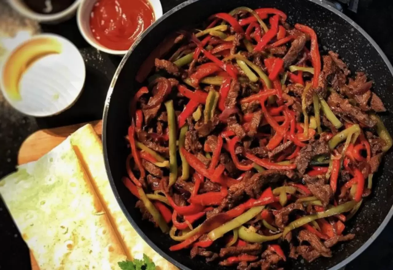 Etli fajitayı lavaşın içine alıp üzerine yoğurtlu bir sos ekleyin, birkaç damla limon sıkın. İsteyen acı sosla, isteyen sade haliyle… Her tabak ayrı bir keyfe dönüşüyor.