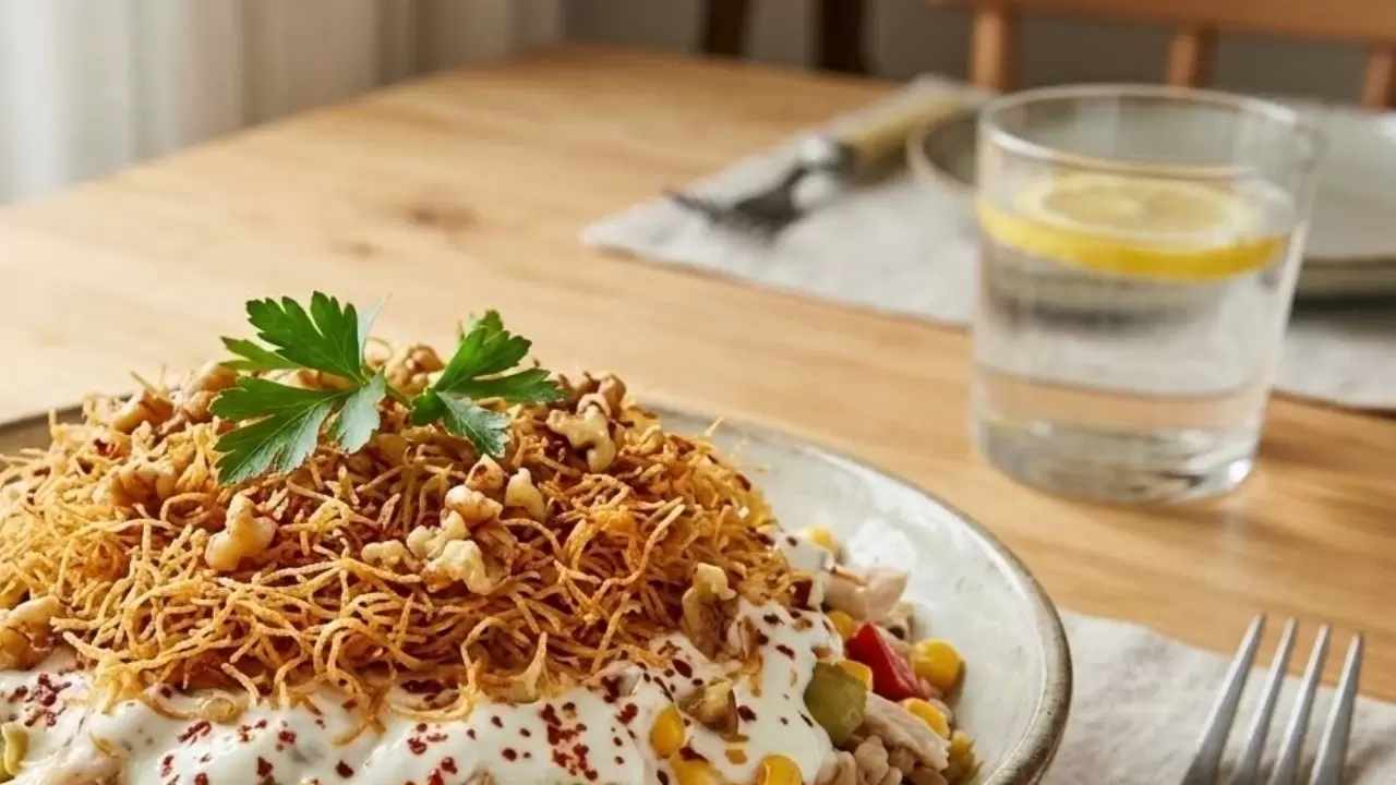 Mutfakta "tekstür" (doku) oyunlarını sevenler için geliştirilen Çıtır Kadayıflı Tavuk Salatası, yumuşak bir taban ile kıtır bir üst katmanın mükemmel birleşimini sunar. İçeriğindeki buğday sayesinde glisemik indeksi dengeleyen ve uzun süre tokluk hissi veren bu salata, mayonez ve sarımsaklı yoğurt sosuyla kremsi bir yapıya kavuşur. En son aşamada eklenen tereyağında kavrulmuş cevizli kadayıf ise, yemeğe sadece çıtırlık değil, aynı zamanda Anadolu mutfağının o geleneksel kavrulmuş aroma derinliğini katar.