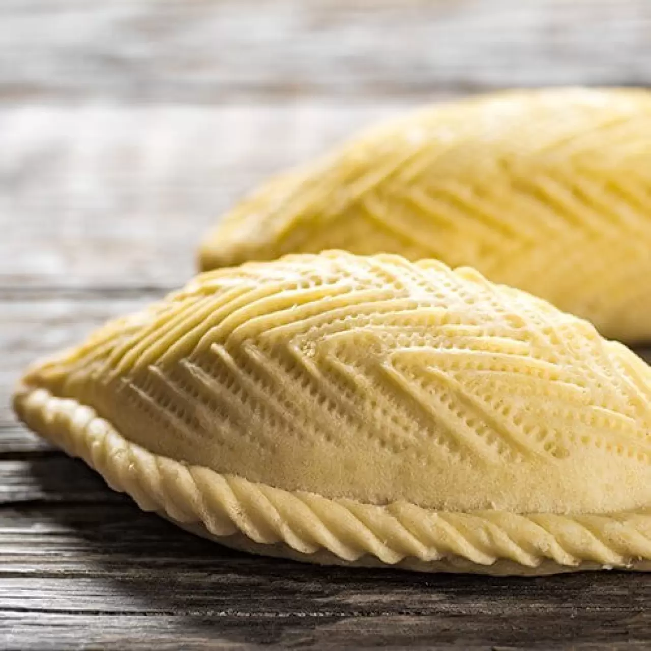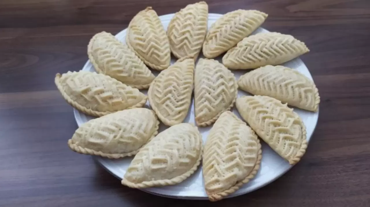 Hamurdan ceviz büyüklüğünde parçalar koparın. Avucunuzda hafifçe açın, ortasına iç harçtan koyup yarım ay şeklinde kapatın. Dilerseniz çatal ya da cımbızla desen verebilirsiniz.