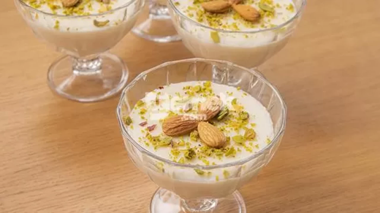 Servis etmeden önce üzerine badem ve file Antep fıstığı serpiştirip soğuk olarak sunun.