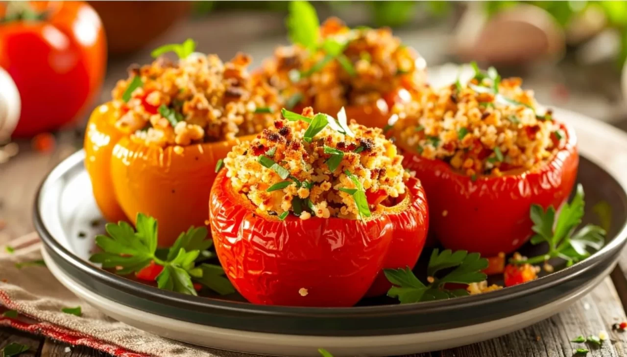 Doldurma: İçlerini temizlediğiniz biber ve domatesleri çok sıkıştırmadan doldurun (pirinçlerin şişme payını bırakın!). Ağızlarını domates dilimleriyle kapatın.